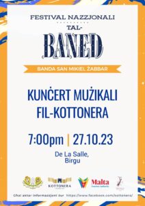 Nhar il-Ġimgħa 27 ta’ Ottubru 2023, il-Banda San Mikiel ta’ Ħaż-Żabbar ser tkun qed tieħu sehem fil-Festival tal-Baned li ser ikun qed jiġi mtella fil-kulleġġ De La Salle, Birgu. Dan il-kunċert ser jibda fis-7pm.